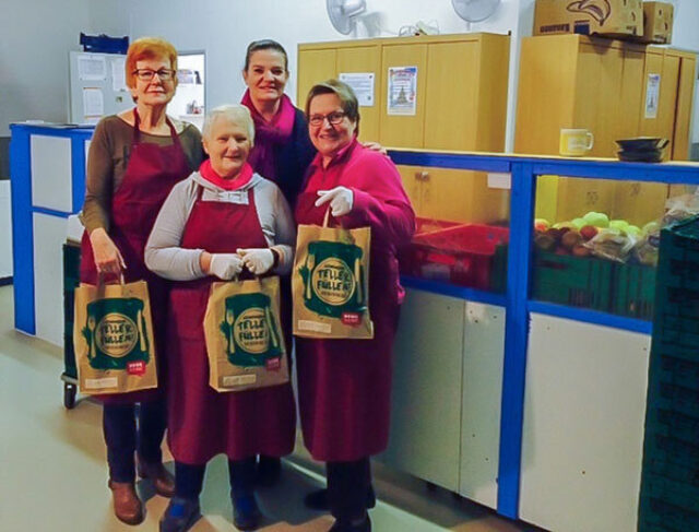 Bürgerstiftung Winsen beschenkt die Winsener Tafel: Im Rahmen der jährlichen Rewe-Spendenaktion unter dem Motto „Gemeinsam Teller füllen“ wurden 2018 schon zum dritten Mal hundert Tüten im Wert von insgesamt 500 Euro von der Bürgerstiftung gekauft und direkt an das ehrenamtliche Team der Tafel in Winsen (Luhe) übergeben. Kurz danach konnten sich die Kunden der Tafel über die vorweihnachtliche Überraschung freuen.